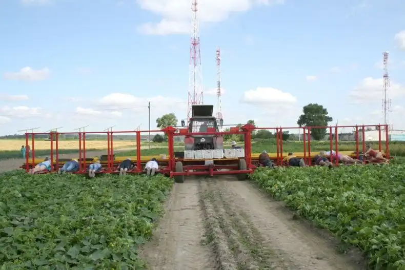 Это новаторский комбайн по сбору огурцов придумали белорусские ученые.