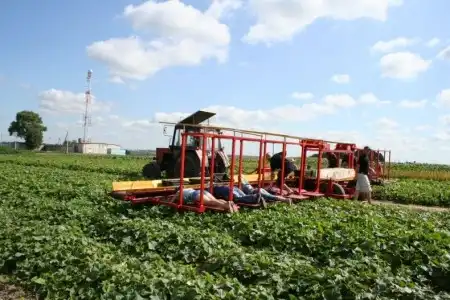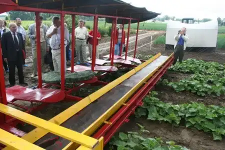 Прикольно, вот бы нам такой, когда в школьные годы огурцы за деньгу у фермеров собирали. Все кто ратует за старый дедовский способ, прикиньте что вам нужно убрать поле метров так 300, рядков так в 10-ть. :)