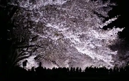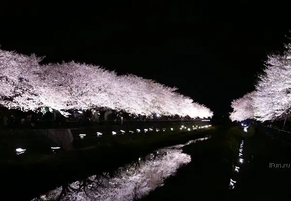 Когда зацветает сакура, под деревьями устанавливают фонари для того, чтобы освещать их снизу, так называемое "райт-аппу". Некоторые небольшие, незаметные, устанавливаются непосредственно у стволов, а есть высокие, украшенные японской бумагой ("васи"), которые ставят под деревьями так, что их свет падает только на цветы.