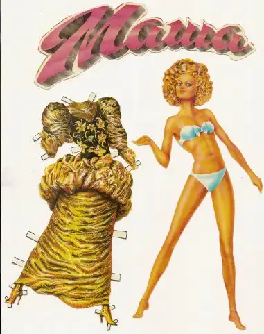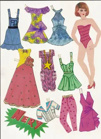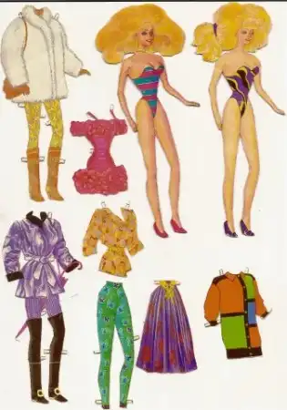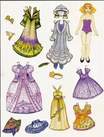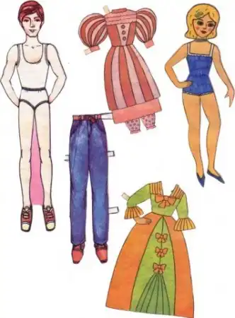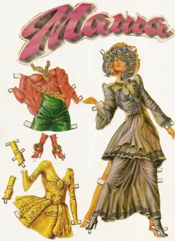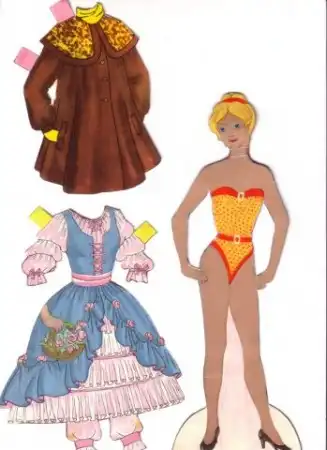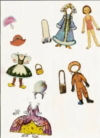 А у меня была такая, как на 36!!! :)))) Но в основном я их сама рисовала и одежду тоже. Это и было в них самым интересным - рисовать одежду. Я ее потом даже вырезала не всегда :)))) Кстати меня тоже бесило, что головы отрываются! Я нашла выход, обклеивала кукол прозрачным скотчем с двух сторон, прежде чем вырезать из бумаги. ))))
