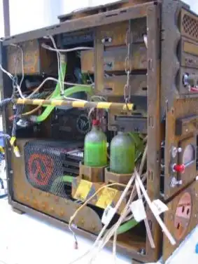 Следующий корпус называется Blackmesa HL2. Даже не видя его, ясно, что вдохновлялся его изготовитель игрой Half Life 2. Создатель мода потрудился на славу: корпус образом отделан не только с внешней, но и с внутренней стороны. То, что получилось в итоге, действительно можно назвать произведением искусства. Ржавый корпус, датчики, тумблеры... Левая крышка прозрачна и позволяет увидеть внутренности ПК (кстати, особо стоит отметить систему водяного охлаждения процессора), а правая - разбита. Конечно, существует опасность порезаться, зато как выглядит!