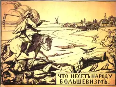Ваши родные и близкие стонут под игом большевистских комиссаров, они мрут от насилия и голода, они зовут вас. Идите же спасать их!