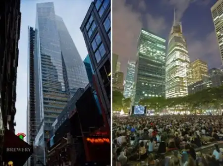 One Bryant Park создан в ответ тяжёлым городским условиям, чтобы “улучшить здоровье и повысить эффективность работы своих арендаторов, снизить затраты и обеспечить защиту окружающей среды”. 54-этажное здание органично вписывается во внешний вид улицы, циркуляция транспорта и пешеходов обеспечивается благодаря расширенным тротуарам, прямым переходам, кроме того, в проект включен просторный городской сад.
