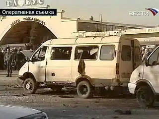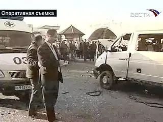 Взрыв прогремел рядом с маршрутным такси, из которого в этот момент выходили люди. Машина остановилась возле входа на центральный рынок города.