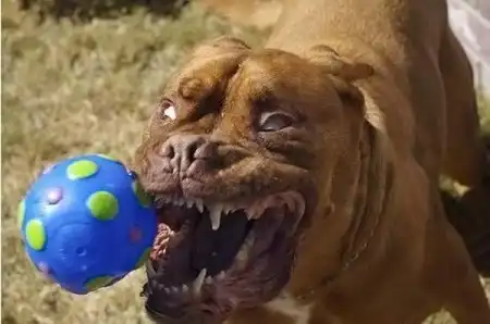 хорошо, что только на мячик так реагирует, а то помню был недавно пост, где подобный песик грабителя "повязал"
