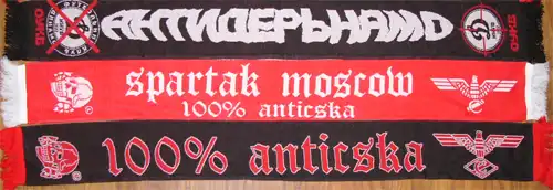 Спартаковские фанаты пошли по другому пути, связанно это с европейскими выездами, так получилось что в то время почти все шарфы были Английскими, так 13 сентября 1993 года появился первый Английский шарф