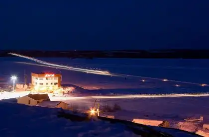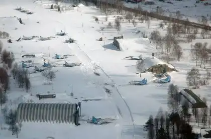 Там, где воронка большая и в нее взлетно-посадочная полоса упирается - это Мирный в Якутии. Летал там и не раз.