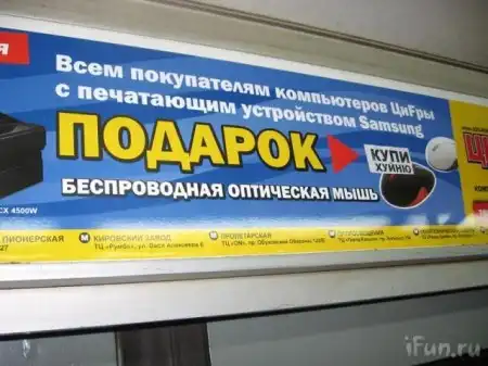Не ставь возможность владения вещью превыше всего. Не ведись на рекламные лозунги. Думай головой.Для подкрепления этих тезисов в московском метро группа активистов дополнила рекламу незамысловатым лозунгом ;)