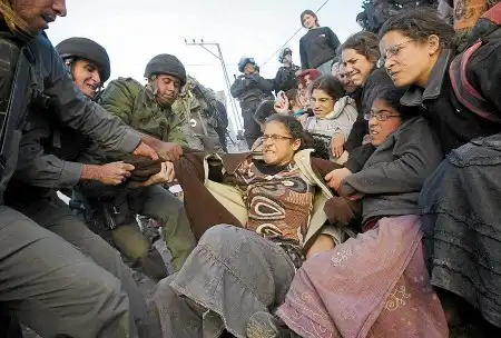 Тут ситуация несколько иная. По закону, все эти постройке на берегу незаконные. Ну и когда вышло предписание евреям (от еврейского правительства же) освободить территорию, дабы не накалять обстановку, поселенцы заартачились. Ну и ввели армию :) А в армии дофига переселенцев из России, которые местных не очень любят, впрочем взаимно.