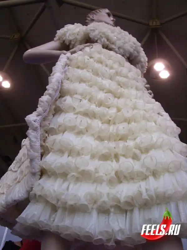 А Вы бы вышли замуж в таком платье? Признавайтесь...Кстати, стоит оно 1500 евро, так что не такое уж оно и дешевое.Ну или можете сами замутить :)
