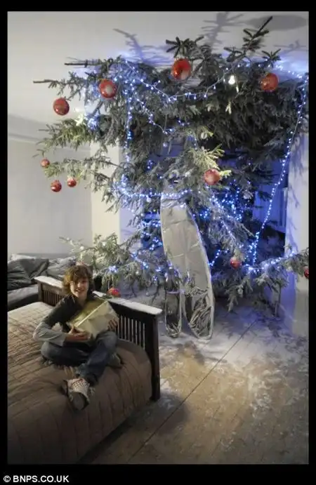 Я у себя вешаю искусственную перевёрнутую елку на люстру.