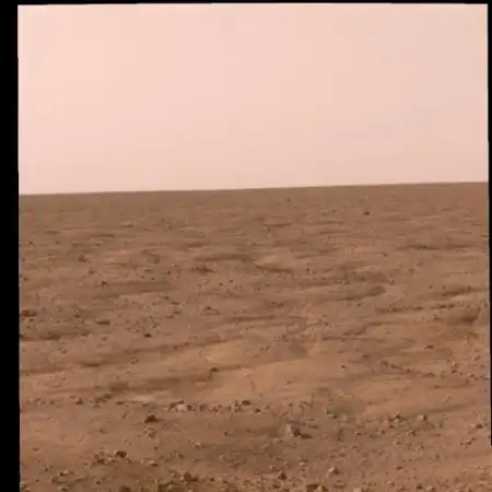 Этот снимок был получен марсоходом Spirit. Марсоход был развернут и остановлен так , чтобы без помех пронаблюдать, как Солнце опускается все ниже и ниже над далеким краем кратера Гусева.