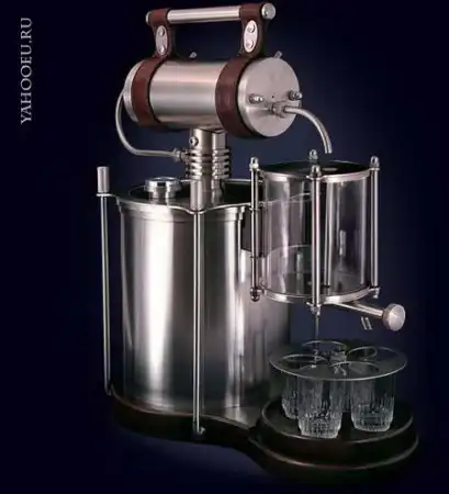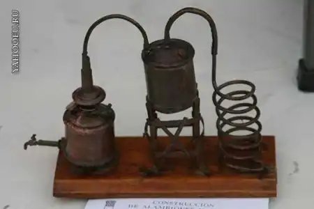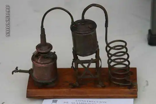 История аппарата теряется во мраке времен. Начало положено в те времена, когда научились отделять жидкие субстанции друг от друга посредством испарения, потом конденсации. Таким образом, отделяя более летучие от тяжелых. Это была тривиальная процедура в практике алхимиков. Вы помните эти стеклянные колбы с булькающей жидкостью и уходящими от них змеевиками