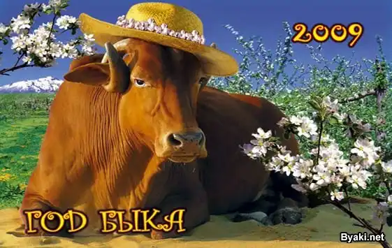 Новый 2009 год Быка (Коровы) - это второй год двенадцатилетнего цикла по восточному календарю. Если вспомнить легенду, то вола (Быка) выбрали вторым из всех животных за его отзывчивость, бесконечную доброту и трудолюбие. Бык (Корова) отличается молчаливой сдержанностью, медлительностью, но точностью и методичностью. Но под этими внешними признаками Быка (Коровы, Вола) скрывается оригинальный ум и высокий интеллект. Правда, этот знак - Бык (Корова, Вол) – довольно консервативен, не терпит нововведений, и всего того, что тревожит его спокойный дух. Одно из самых главных черт Быка - забота о семье, и семья Быка процветает, потому что он является ее мощной опорой.