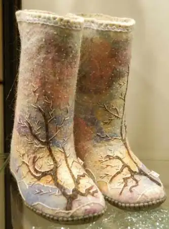 Валенки не должны плотно облегать ногу - необходимо некоторое воздушное пространство. Чтобы валенки долго служили, на них одевают калоши, человек в подобном облачении просто неуязвим для пронзительного ветра и низкой температуры. А еще валенки - это не только экологически безопасная обувь, но полезная для здоровья. Давно доказано, что овечья шерсть обладает целебными свойствами и способна излечить от многих заболеваний. К тому же валенки свалены без единого шва, что всегда ценилось любителями комфорта.