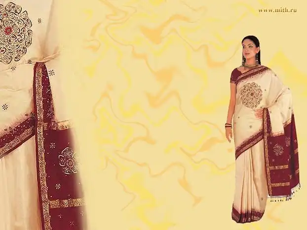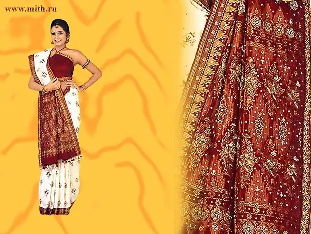 Тогда распутные победители схватили один конец тонкого материала, в который она была скромно и тщательно задрапирована. Они продолжали тянуть его и распутывать, но тщетно. Ведь Господь Кришна пообещал защитить ее добродетель с помощью сари. Так, 5000 лет назад, в первый раз в письменном источнике была упомянута древняя индийская женская одежда - сари.