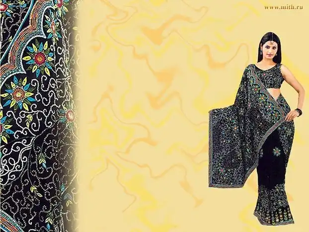 Настоящее индийское сари - просто длинный кусок ткани (от пяти до девяти метров), обмотанный вокруг женского тела. Сари обвязывается вокруг талии, а один из краёв перекидывается через плечо. Именно эта техника делает сари сексуальным: верхняя часть обнажает изгибы женского тела от низа грудной клетки до середины живота. Такая блуза более известна как чоли, но её носит не каждая женщина. Многие просто поддевают более закрытую блузу под сари, а затем заправляют её в юбку.