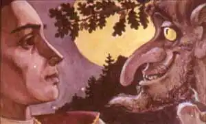 — Не беги! — кричит бесовка.— Погоди, воришка!