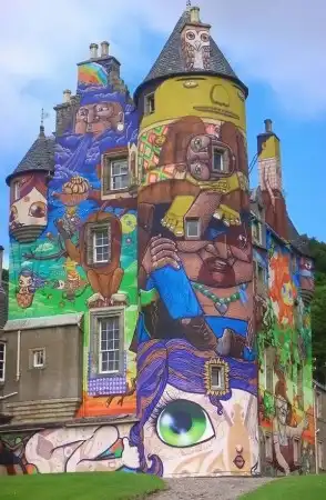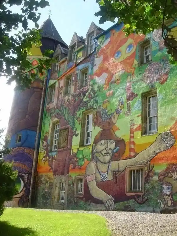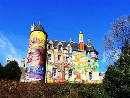 Очень смелый поступок, раскрасить древнее родовое гнездо под "хохлому", хотя с другой стороны такой неожиданный ход может привлечь больше туристов и само собой больше денег. ведь содержать старые замки очень дорогое удовольствие.