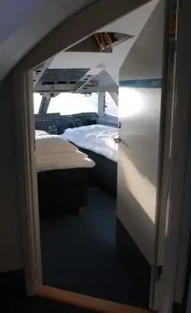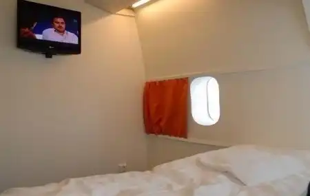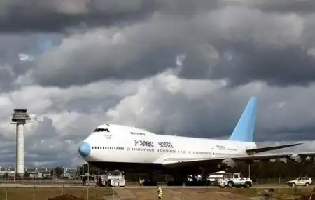 В стокгольмском аэропорту Арланда открылся необычный отель. Один предприимчивый швед по имени Оскар Диос выкупил у разорившейся в 2002 г. авиакомпании Боинг 747-200 (производства 1976 г), убрал кресла в пассажирском салоне и соорудил там 24 номера на трех человек каждый. В отеле еще и один номер-люкс в пилотской кабине с прекрасным видом на аэропорт. Цена за сутки проживания в отеле – от 350 до 1350 шведских крон. Летать Jumbo Hostel не будет.