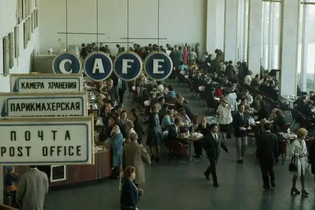 1975-й год. Шереметьево-1. Тут, кстати, не сильно поменялось. В кафе можно было встретить шоколад, пиво, сосиски с горошком. Сендвичей не существовало, мог быть в наличии бутерброд, представляющий собой кусок белого хлеба, на одном конце которого была ложка красной икры, а на другом - один виток сливочного масла, который каждый как мог заталкивал и притаптывал вилкой под икрой.