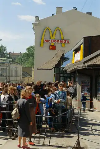Кстати, я понял, почему в 1990-м же году в логотипе Макдональдса был советский флаг. Дело в том, что у нас строили не американский, а канадский макдональдс (у них там как-то хитрожопо поделен мир). А в Канаде исторически буква М идет с канадским флагом (см. http://www.tema.ru/travel/canada-1/). Ну они просто сделали по аналогии, как им привычно было.