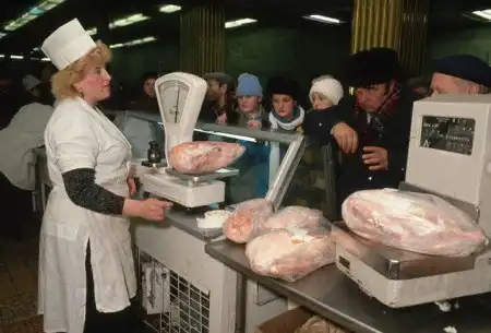 Хорошее мясо можно было достать по знакомству или купить на рынке. Но на рынке все было в два раза дороже, чем в магазине, поэтому туда ходили не все. "Рыночное мясо" или "рыночная картошка" - это высшая похвала продуктам.