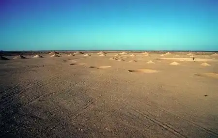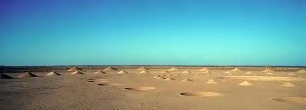 "Дыхание времени" создал человек, точнее группа людей, притом не так давно. (Группа D.A.ST. - сотрудничество между тремя художниками: Danae Stratou, Скульптор, Александра Стратоу, Индустриальный Проектировщик, и Стелла Константинайдс, Архитектор. Группа была сформирована в мае 1995, основанная на общем желании создать установку в пустыне. Участок, который был выбран - плоское пространство песка, который находится между Красным морем и телом гор. Работа покрывает область ста тысяч квадратных метров и вовлекает смещение восьми тысяч кубических метров песка. Сто семьдесят восемь конических объемов формируют две взаимосвязанных логарифмических спирали, которые перемещаются из общего центра с различием фазы ста восемидесяти степеней в том же самом руководстве вращения. Одна спираль состоит из вогнутых конусов, в то время как другие выпуклых. Центр- глиняное судно с секцией W - союз положительного и отрицательного конуса. Если ёмкость заполнить водой, выдающийся конус в центре сформирует крошечный остров на уровне горизонта. 7 марта 1997 было закончено строительство "Дыхания пустыни".