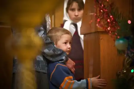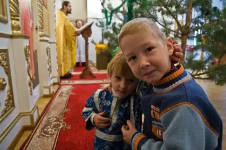 Для исполнения роли алтарника Ивану сшили маленький стихарь. Обычно непоседливый дома, в храме Ванька преображается и с честью выполняет все свои нехитрые обязанности.