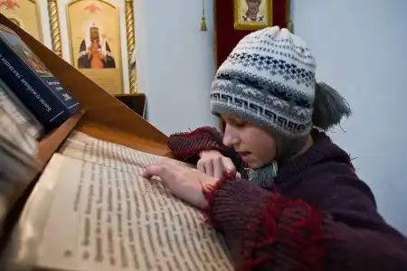 У Ксении в пятницу был день ангела. Она читает молитву на старославянском — громко, отчетливо и с большим удовольствием. Ксюша — старшая среди детей, очень серьезная, умеет делать по дому всё.