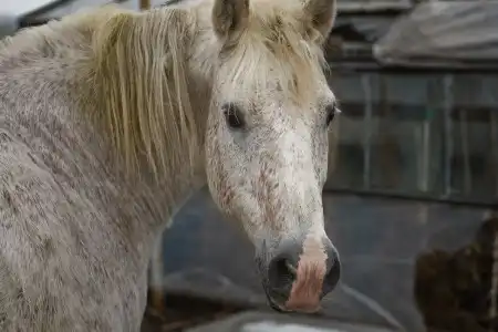 А это еще один приемыш семьи отца Владислава. Мерина Серёгу должны были отвезти на скотобойню, но он теперь доживает свои дни здесь. Гуляет по двору, а ночь коротает в коровнике со Жданой и Зорей.