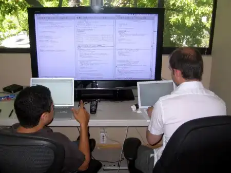 Удобно наверное на таком мониторе работать. А то сидишь в маленький экранчик ноутбука пялишься целый день, глаза устают очень. А тут свобода :-) Правда головой вертеть запариться можно :-)
