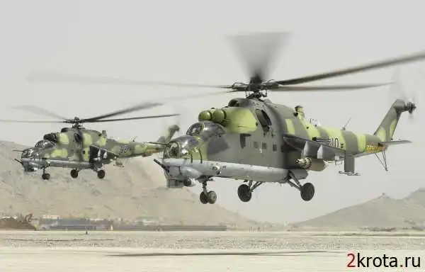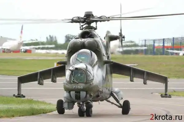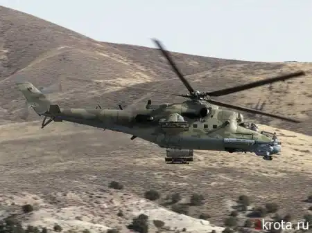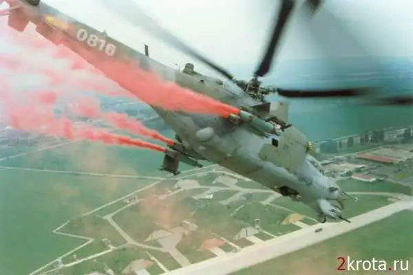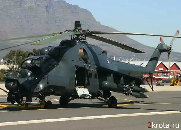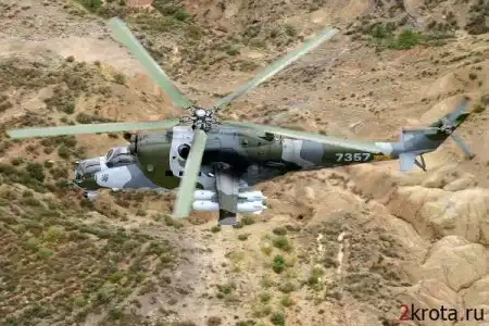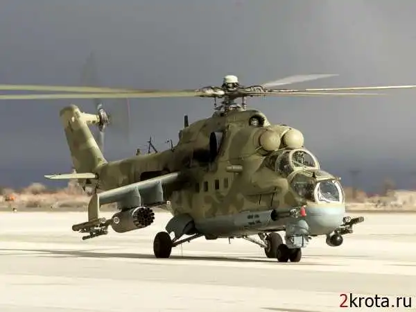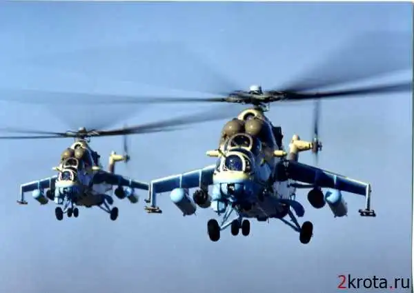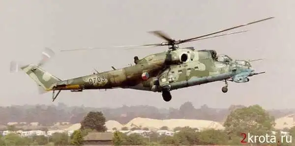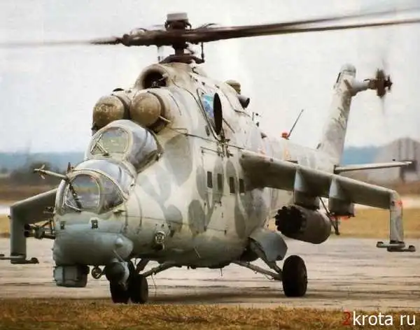 Вертолет Ми-24, получивший в НАТО кодовое наименование "Хайнд" ("Hind" - батрак), был разработан в середине 1960-х гг. в качестве многоцелевого боевого вертолета. Он появился из семейства машин Миль Ми-8/Ми-14, имел внешнюю компоновку, как у своих предшественников, и динамическую систему от Ми-8, но более тонкий фюзеляж, подходящий для пушечного вертолета и вмещавший экипаж из четырех человек и восемь экипированных солдат. Свободнонесущее высокорасположенное крыло имело небольшой размах с большим отрицательным углом поперечного V. На каждой консоли этого крыла могли размещаться различные варианты вооружения. Введенный в эксплуатацию в 1973-74гг., вертолет первоначально был развернут в Восточной Германии. Разработаны варианты вооруженного десантного, противотанкового и вертолета сопровождения. Около 1500 вертолетов "Хайнд", серийно выпускавшихся с начала 1970-х гг., находятся сейчас в составе авиации стран СНГ.
