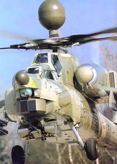 У нас всего этого не было и в помине; но время прошло не впустую... Для наглядности: представьте себе воина, тихо, но быстро бегущего в полной темноте по пересеченной местности и навскидку поражающего одного за другим появляющихся противников. Это – Ми-28Н «Ночной охотник» с совершенно новым российским комплексом бортового оборудования. Сейчас это пока единственный в мире вертолет, способный как в ручном, так и в автоматическом режиме лететь на высоте от 5 метров с огибанием рельефа местности днем и ночью, в сложных метеоусловиях, с постоянным поиском, опознаванием, уничтожением наземных и воздушных целей, и выдачей целеуказания другим участникам боя. Установленная многофункциональная РЛС «Арбалет» предупреждает о препятствиях: отдельно стоящих деревьях и проводах линий электропередач; отдельно стоящего человека она видит ночью за 500 м ; рельеф местности – на несколько десятков километров. Для той же цели – очки ночного видения и пилотажная тепловизионная станция, дающая «инфракрасное окно в ночь» вперед по курсу или в направлении поворота головы пилота. РЛС дает возможность искать цели, работая вместе с ОПС (оптико-прицельной системой) «Ротор». Для наглядности: «Охотник», тихо урча, висит за деревьями, выставив из засады только свою «макушку» - шар РЛС. Определив цели, распределив их между участвующими в атаке вертолетами, выбрав себе объект для атаки, он энергично «подскакивает» вверх и «обрабатывает» цель средствами поражения.