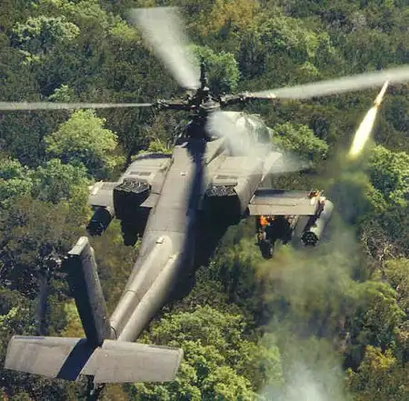Главный калибр «Апача» – ракета Hellfire AGM-114A с лазерным наведением для работы днем, правда, при загрязненности атмосферы ее использование проблематично. Ракету AGM-114B с радиолокационным наведением стало возможным (благодаря новой РЛС) применять ночью и при любых метеоусловиях. Экипаж, взяв на борт оба типа ракет, может во время боя выбирать оптимальный. Помимо ракет AGM-114 «Апач» можно будет вооружать ракетой «Хеллфайр-II» (разрабатывается для перспективного вертолета «Команч») с активной системой наведения и применением по принципу «пустил-забыл», что дает машине возможность сразу после пуска уйти за укрытие. Все ПТУРы семейства «Хеллфайр» - хорошие ракеты, способные поражать бронированные цели с дистанции 6- 7 км (бронепробиваемость до 1000 мм ), эффективные при стрельбе по подвижным малоразмерным целям, укреплениям и так далее. Но у них есть один существенный недостаток – дозвуковая скорость. Это намного увеличивает время атаки, особенно на больших дистанциях, повышая уязвимость вертолета. Так, дистанцию 4 км ракета пролетает за 15 сек., в то время как российскому «Вихрю» на это требуется всего 9 сек.