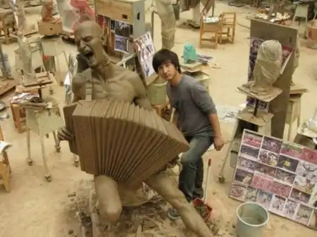 он в клипе голый на баяне шпарит:)))интересно он сам то в курсе что ему памятник отгрохали?