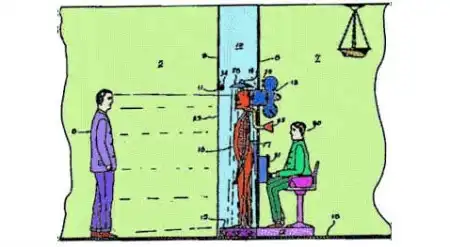 Подозреваемого в преступлении изобретатель предлагал препроводить в помещение, где его ожидал мерцающий скелет, мигающий пустыми глазницами. В смежной комнате должен был сидеть дознаватель, управляющий движениями скелета и задающий вопросы по существу через трубку во рту призрака.