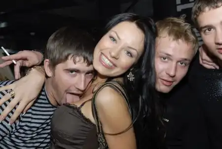"куча красивых тёлок и одна страшная,с носом"
