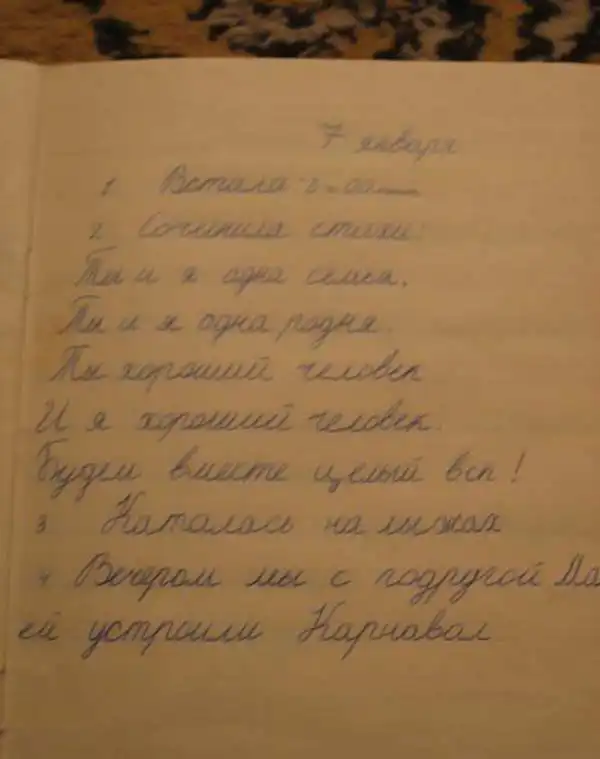 Ага ужастное наследие тоталитарного режима, кговавая гебня, собирала такие тетрадки после каникул и сажала в лагеря родителей если они на новый год вели антисоветскую агитацию, не хлопали во время поздравительной речи генерального секретаря или не кричали "ура". Самих же детей после того как родители отправлялись в лагеря съедал лично кровавый тиран Сталин.