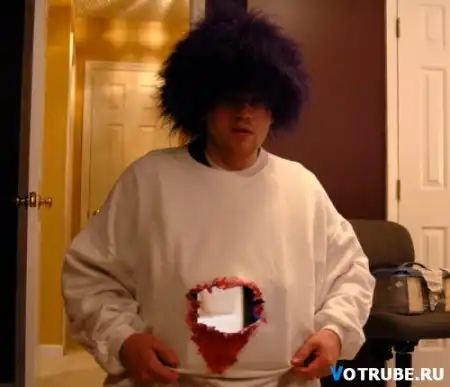 куда зеркало засунуть? Камера находится за спиной снимает задний фон, а дисплей на животе показывает в прямом эфире этот снятый фон, и получается эффект что у мужика дырка в животе насквозь, даже если он будет двигаться в "дырке" также будет видно что у него за спиной. Попробуй сделать тоже самое с помощью зеркала