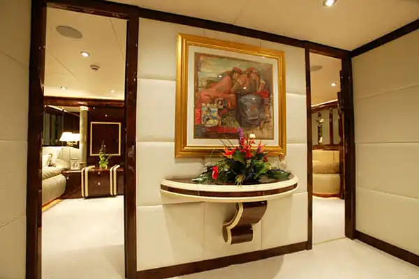 Яхта, окрещенная “И Мира - Недостаточно” - разработана голландским военно-морским архитектором Франком Малдером и построен в Голландии. Это обтекаемое , мощное судно может достигнуть скоростей в 65 узлов или выше при пиковых океанских условиях на ее дизелях Paxman и турбинах Lycoming. Внутренний проект яхты сказочно-богатый, с винтовой лестницей, соединяющей три палубы, мерцающий мрамор и яркий блеск грецкого ореха , итальянская мебель с тканями на основе высоких технологий, кристаллы Swarovski, великолепно оборудовали ходовую рубку, с 42″ плазменным телевидением, роскошный аппартамент владельца с мраморной ванной, и четырьмя дополнительными купе.