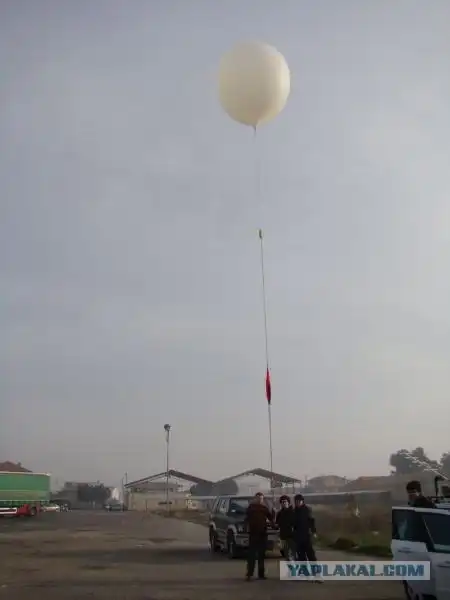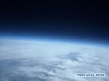 Суть происходящего - дешевая фотокамера, шар, радиопередатчик - все это устройство для путешествия в стратосферу. Высота подъема примерно 30 км. Очень красивые фото.