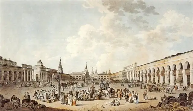 21 Красная площадь в 1790-х гг. Гравюра Ж.Делабарта по рисунку Г.Гутенберга. 1795 г.