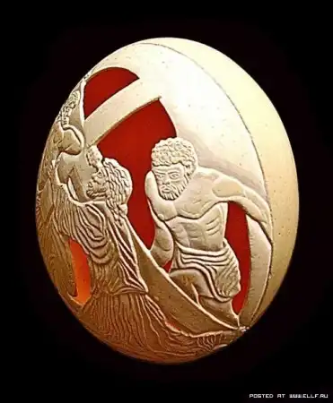 Скоро Пасха! Практически все будут печь пасхальные куличи. А для того, чтоб тесто хорошо получилось есть парочка правил: не жалеть яиц и не подпускать к кухне мужчин! Ну, с первым проблем не будет, а для второго есть отдельный рецепт. Яйца, что в тесто пошли, бьете аккуратненько, так чтоб только маленькая дырочка получилась, а скорлупу любимому отдаете: пусть творит в свое удовольствие и Вам не мешает! И все останутся довольны! А чтоб мужчина клюнул на это гиблое дело - покажите ему парочку таких вот фотографий и скажите, что он - самый лучший во всем - сможет куда круче сделать!
