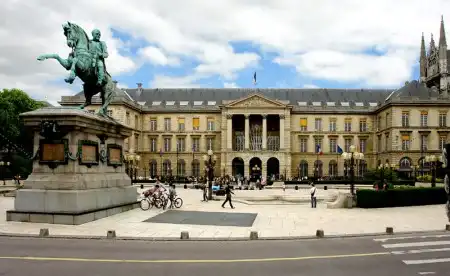 На фотографии пешеходная улица, ведущая к парламенту Нормандии