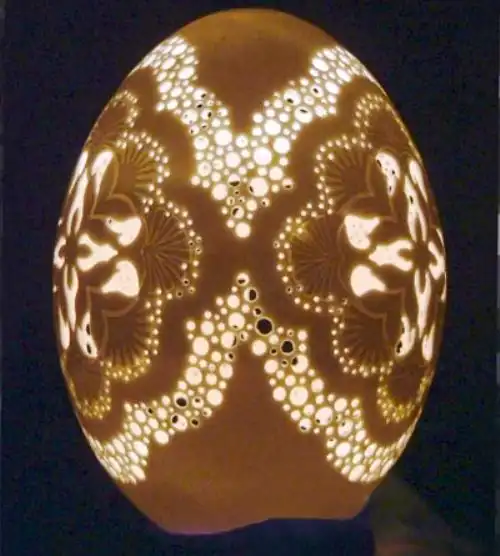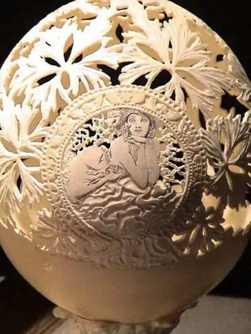 Кстати, вырезать можно не только из куриных и гусиных яиц, но и из перепелиных и страусиных. Последние особенно любят новички, так как они очень твердые и большие. А еще страусиное яйцо состоит из трех слоев, а значит – рисунок можно сделать многослойным.