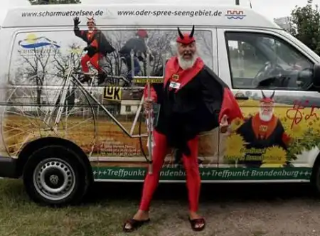 В общей сложности El Diablo построил более 100 необычных самодвижущихся аппаратов. Были среди них и другие рекордсмены. В том числе и невообразимо гигантский лежачий велосипед-тандем длиной 12,4 метра, с пассажирами, болтающимися параллельно земле на высоте 6,65 метра.