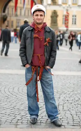 И теперь, когда мы видим людей, украсивших свои штанычемоданыавтомобили Георгиевскими лентами, подобно дешёвыми новогодними гирляндами, мы приходим в ярость — мы говорим вам: Снимите эти ленты, если у вас ещё осталось чувство собственного достоинства и уважения к собственной истории!