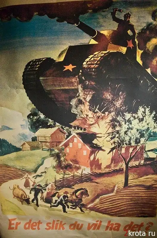 Несколько плакатов, распространяемых нацистами в Норвегии. «Norges nye nabo» – «Новый норвежский сосед», 1940 г. Обратите внимание на модный и ныне прием "перевертывания" латинских букв для имитации кириллицы.