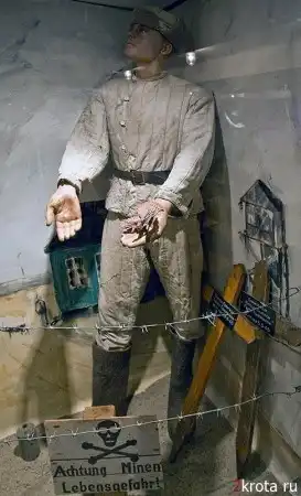 В нескольких подвальных помещениях устроены реконструкции – как это выглядело тогда, в этом самом месте. Это камера, где содержались особо опасные арестованные – попавшие в лапы гестаповцев члены норвежского Сопротивления.
